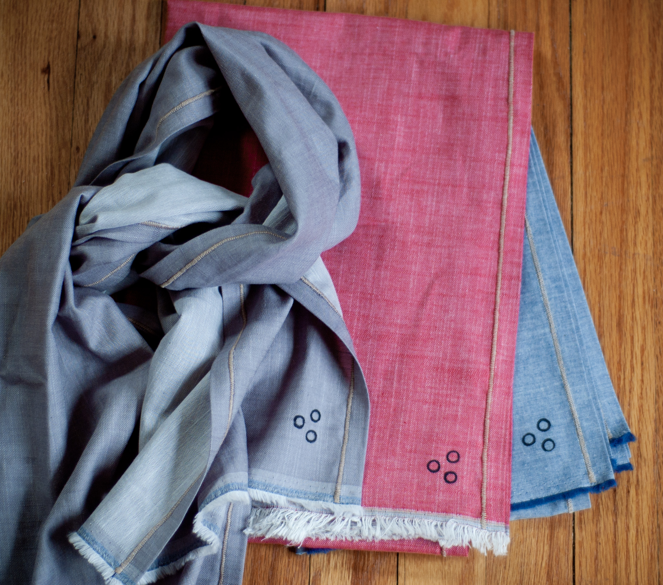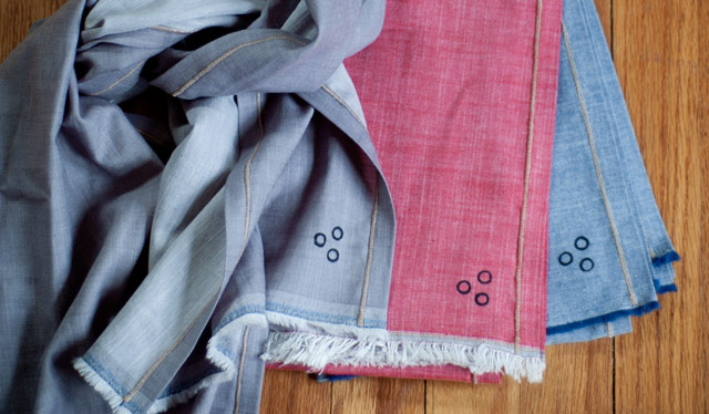 12/19/11 - Chambray scarves in grey, red, black (not shown).