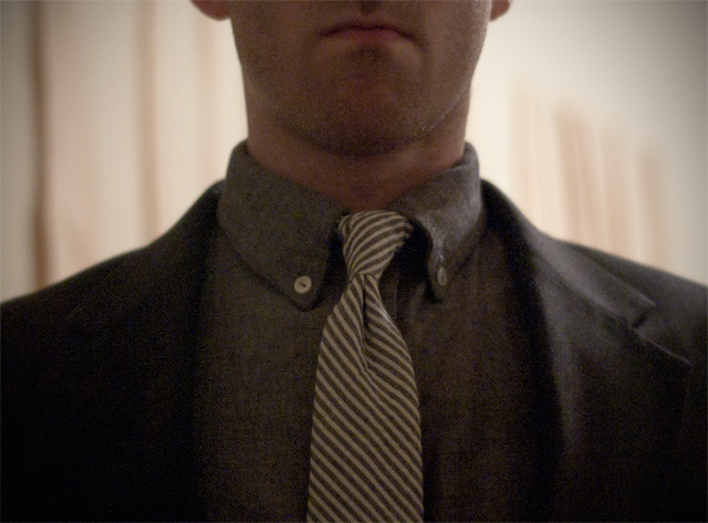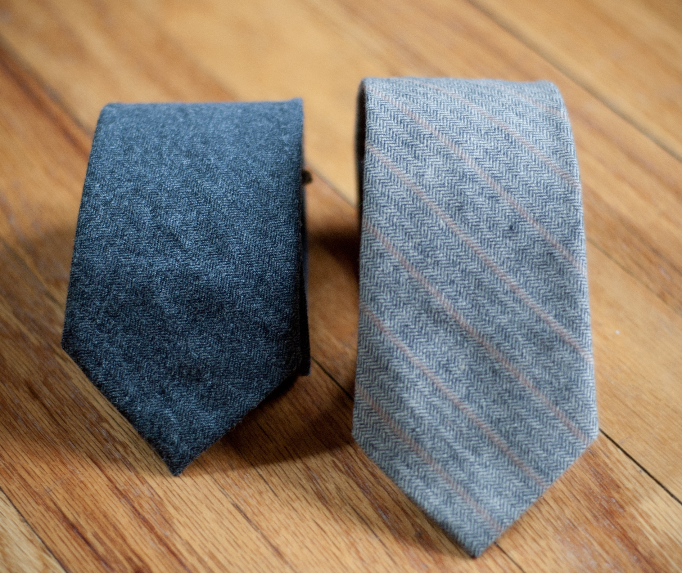 12/19/11 - Italian Herringbone hand-sewn wool ties in charcoal, brown stripe.
