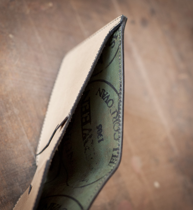 Lined in 2.5oz vegetable tanned kipskin. Each card slot holds 4-5 cards.