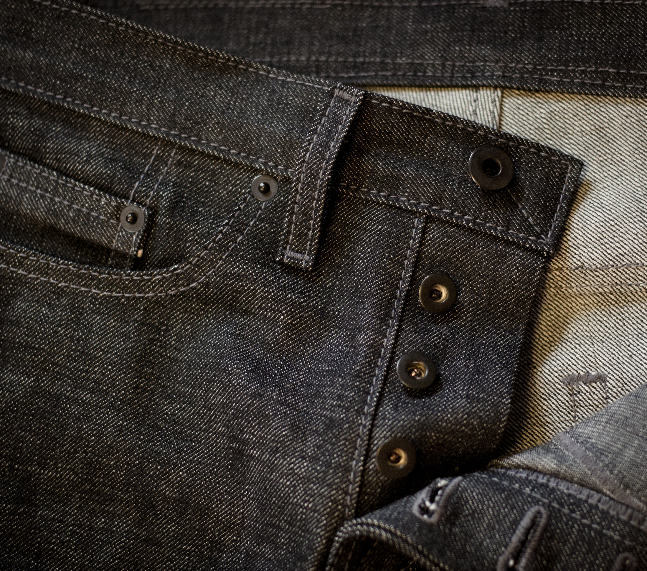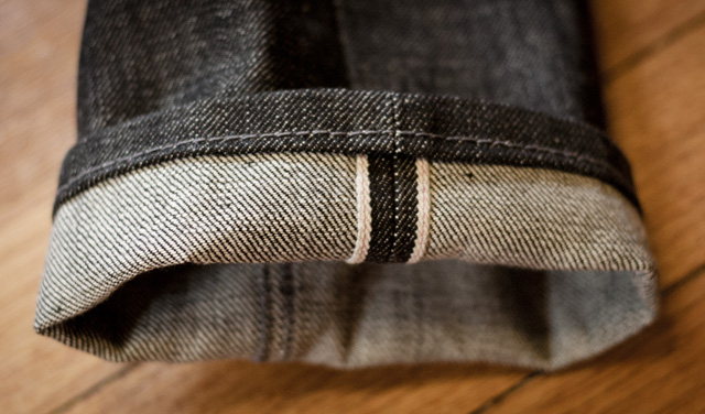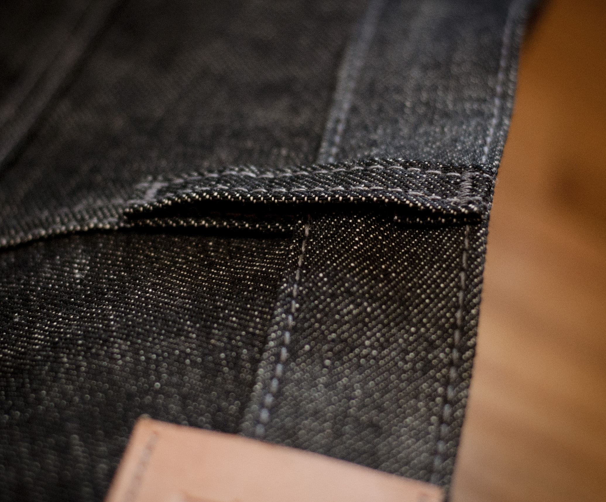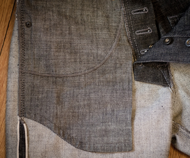 Coin pocket with visible selvedge.
