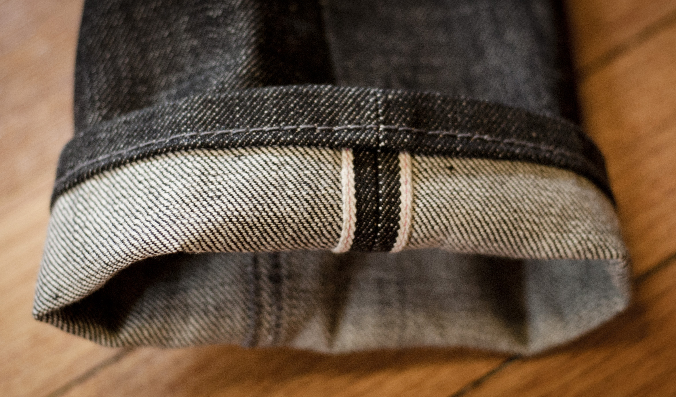 Precise hemming, narrow selvedge line.