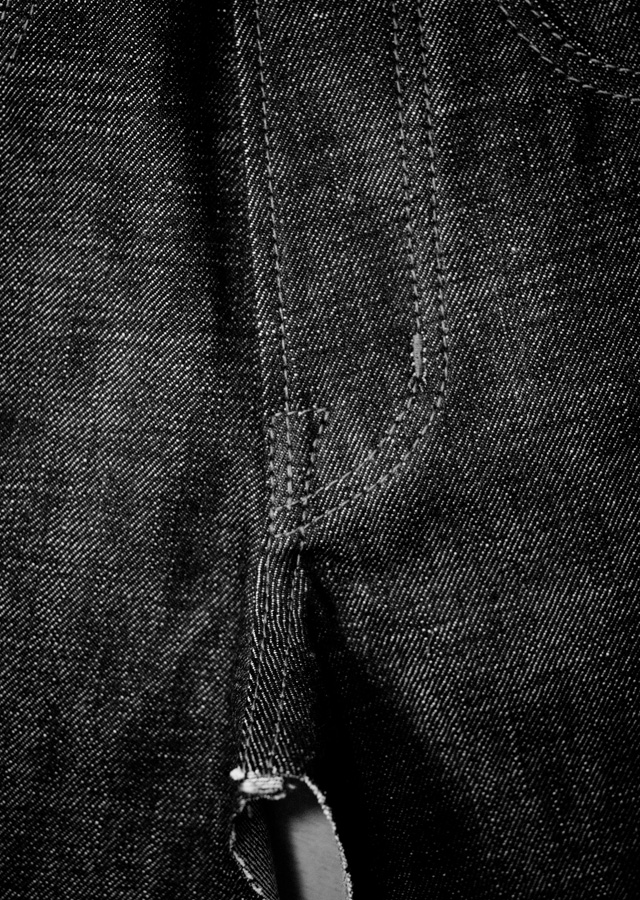 Straight, hand-felled seams, yoke consisting of 16 layers of denim